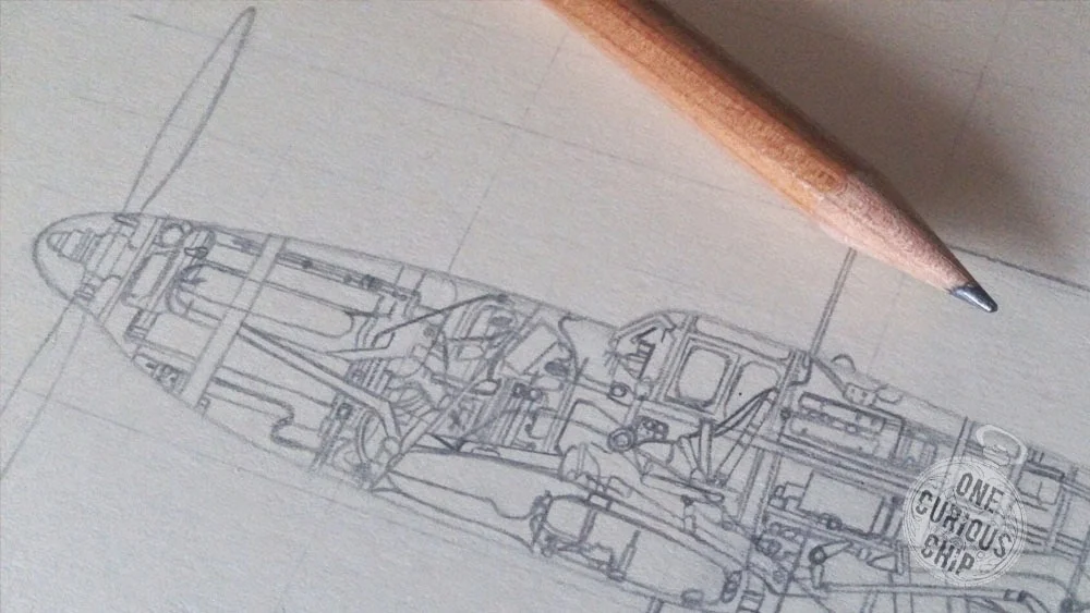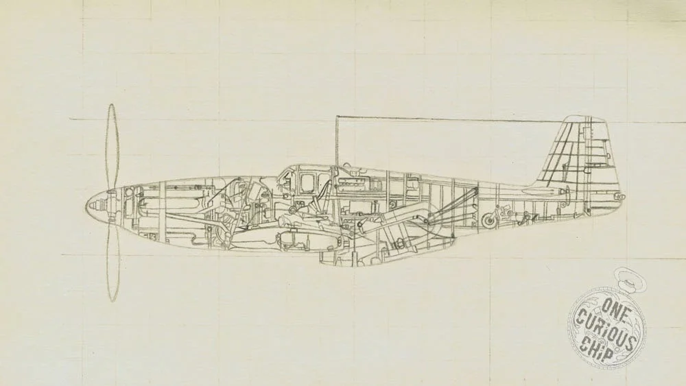 . It's a P51 Mustang - one of the earliest models - to go with my little collection of WWII aircraft blueprints. It took two long days to get the pencil sketch finished, and then another four or five hours on top of that to flip it digitally and finish it off.